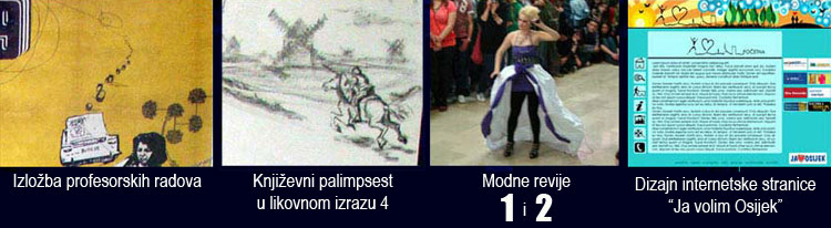 Pogledajte fotografije izložbe profesorskih radova, učeničkih uradaka "Palimpsest 4", jedanaest modnih revija, prezentacije dizajna internetske stranice "Ja volim Osijek", kao i fotografije dijela zabavnoga programa.