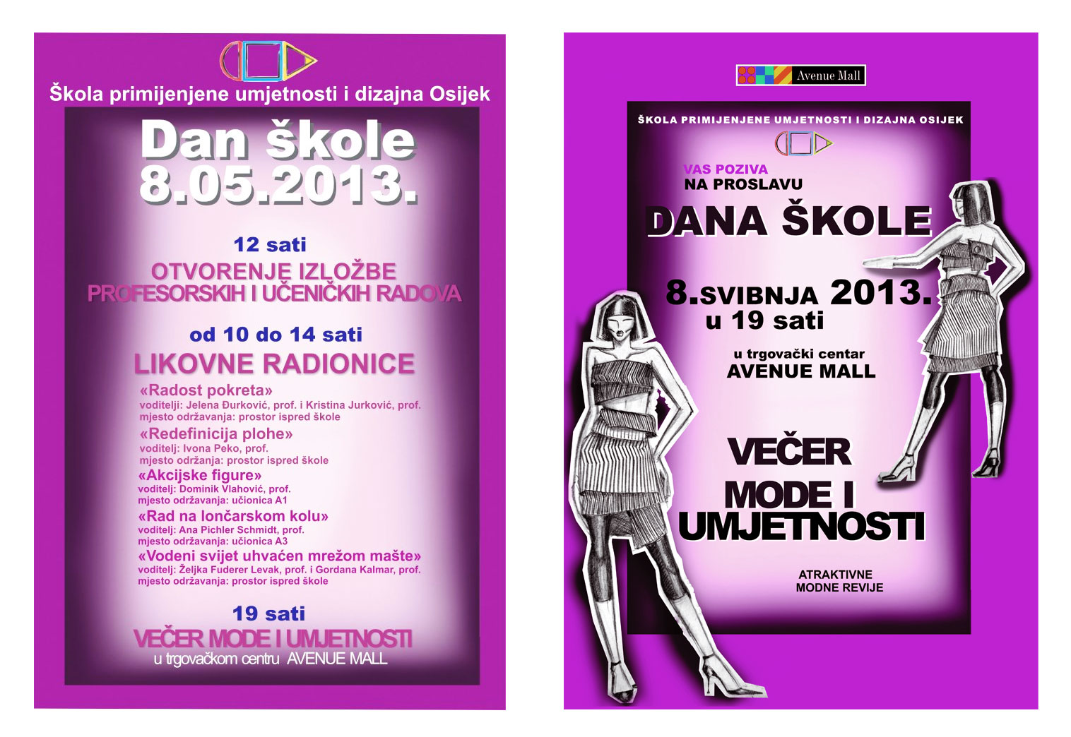 U 19 sati započeo je večernji dio proslave Dana škole, u trgovačkom centru Avenue Mall. "Večer mode i umjetnosti" je onaj dio Dana škole, u kojem učenici iz smjera Dizajn odjeće prezentiraju svoj rad u profesionalnim uvjetima - na pravoj manekenskoj pisti. Modeli koji nose njihove kreacije su njihovi kolege, prijatelji i poneki profesor. Modnu reviju je organizirala i oblikovala Jelka Bauer, prof.mentor.
