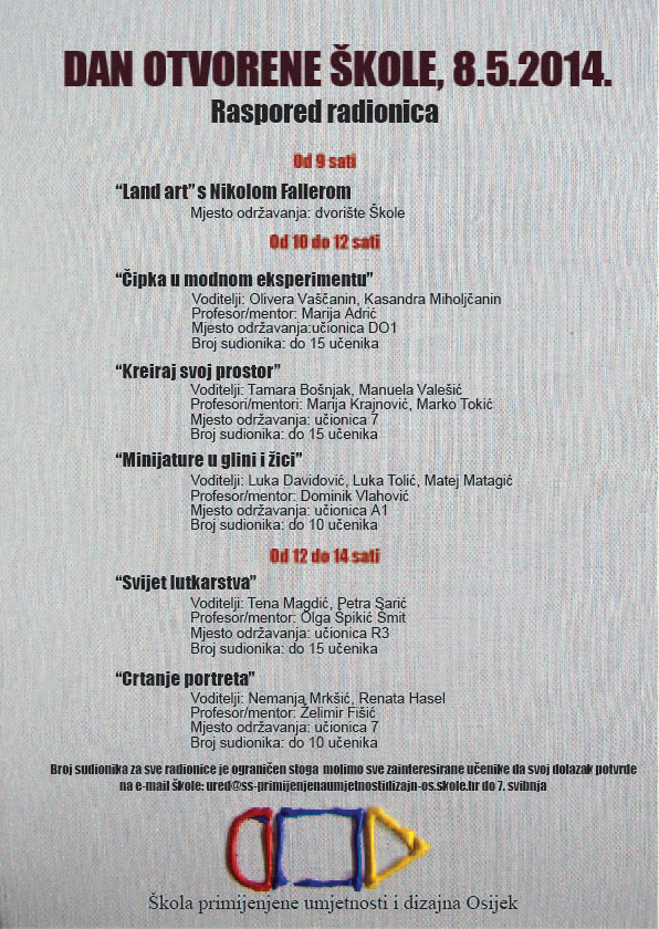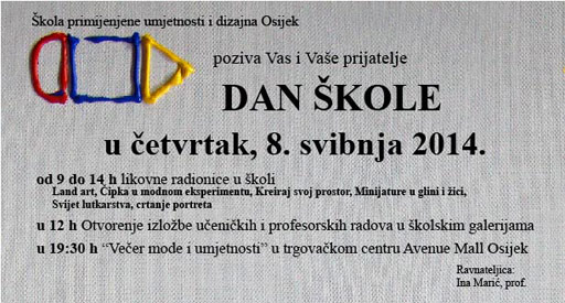 početna / o školi / kontakt / nastava / aktivnosti i projekti / stručno usavršavanje / linkovi ________________________________________________________________________________________________________________________________________________ © Copyright 2014. Škola primijenjene umjetnosti i dizajna Osijek Krbavska b.b., 31000 Osijek / tel: 031/273 126 / fax: 031/273 111 /ured@ss-primijenjenaumjetnostidizajn-os.skole.hr / umjetnicka.skola.osijek@gmail.com oblikovanje: Marko Šošić, akademski slikar - prof. |